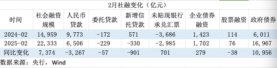 央行数据显示,2月社会融资规模增量为2.23万亿元,同比多增7300多亿元,显示金融体系对实体经济支持力度较强。分项来看,政府债券是推动2月社融增长的主要力量。