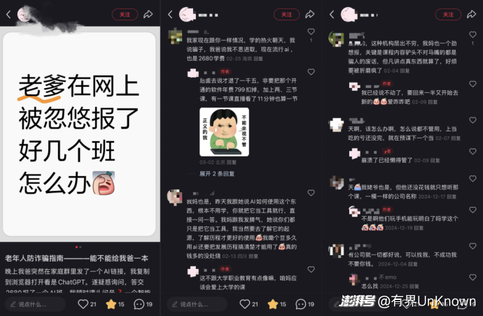 虽然子女觉得这些AI课程就是割韭菜,但老年人却对此深信不疑。于是,老人与子女之间的对抗就开始了。