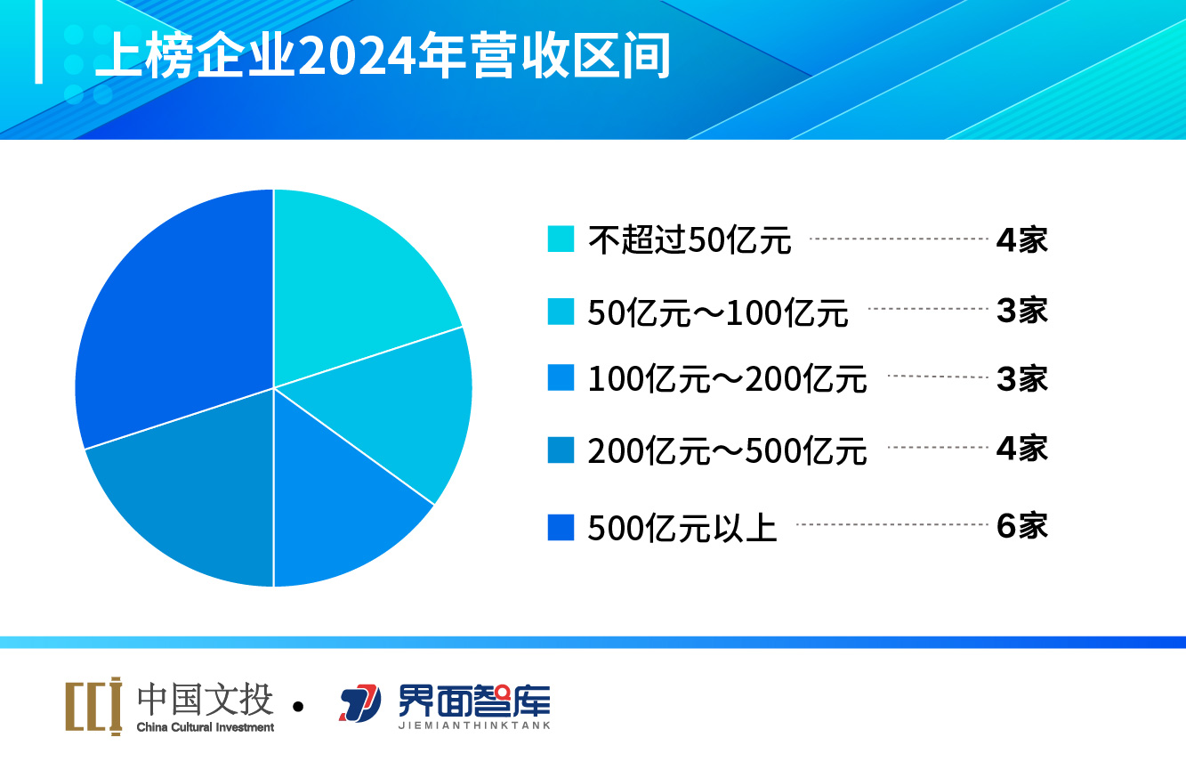 1.营业收入规模:头部生态、多元创新与战略潜力并存。上榜企业中,2024年度营业收入超过500亿元的企业有6家,腾讯、抖音等企业通过聚合流量、推荐算法、内容运营和技术底座构建了大型文化生态系统。10家企业营业收入集中在50-500亿元区间,这一规模区间的新型文化企业呈现了业态的多样性:米哈游、游科互动代表“技术美学”对全球用户的征服;科大讯飞、影石创新是以硬核工具重塑生产和消费模式。营业收入低于 50 亿元的4 家企业战略潜力突出,如深度求索凭借顶级开源大模型体系进入文化与科技融合的核心赛道。