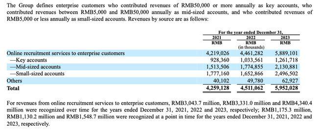 这部分企业客户的在线招聘收入,其实就是企业为了招人,给 Boss 直聘交的钱。