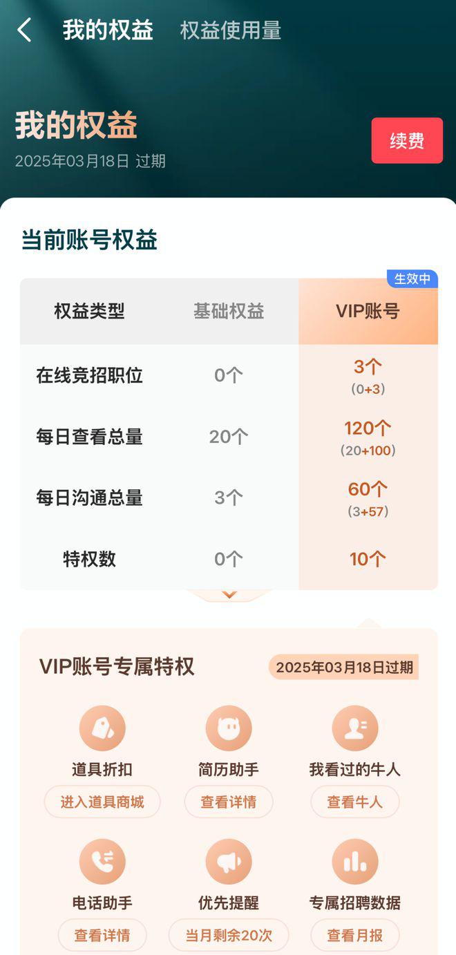 但这些权益,恰恰也说明了企业要想在 Boss 直聘上招人,从岗位发布、搜索候选人到主动聊天这些必经环节,都得花钱。