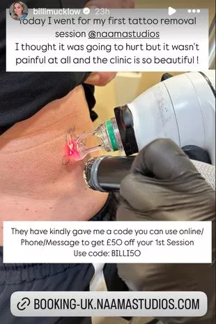 比利把她的纹身去掉了(图片:Instagram)