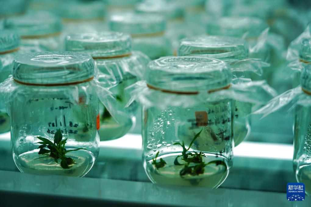这是 2 月 17 日在斯里兰卡霍拉纳的项目实验室里拍摄的菠萝组培瓶苗。新华社记者 伍岳 摄