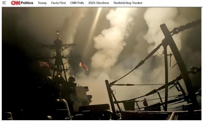 美军战舰发射导弹。图 / 美国有线电视新闻网