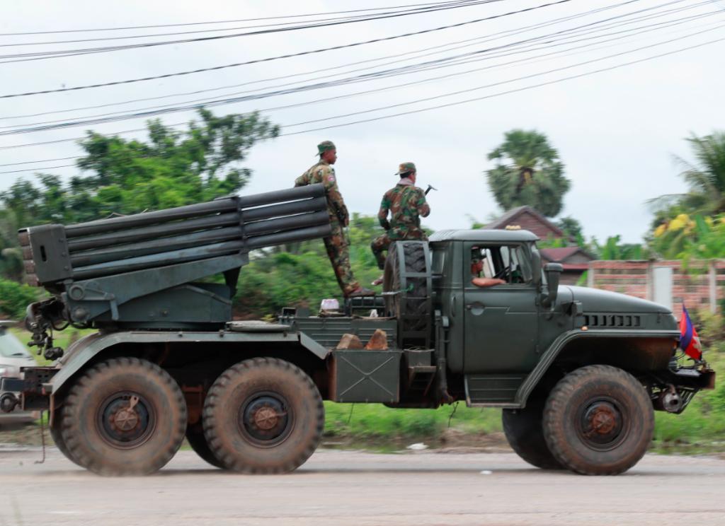 ▲当地时间 2025 年 7 月 27 日,柬埔寨奥多棉吉省,泰国与柬埔寨边境地区交火持续,柬埔寨士兵乘车前行。图 /IC photo