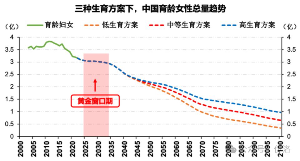 2025-2035 年,我国育龄女性总量仍将稳定在 2.9 亿至 3.1 亿规模,建议抓住这一改善生育政策的黄金窗口期,尽快在一些地区进行激励政策试点,开展生育意愿统计调查与数据分析。