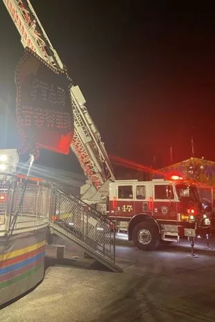 一名工人和19名乘客被困在星塔上,因为消防部门无法用标准的65英尺的云梯卡车到达他们身边。相反,他们不得不叫来一辆MCFS 100英尺的卡车。