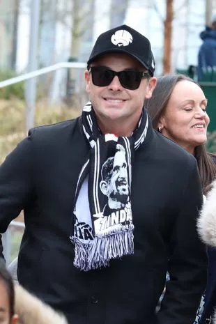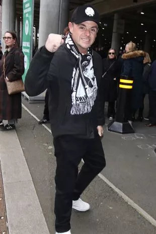 这位英国达人秀主持人穿着他最好的黑白套装,独自一人在世界著名的足球场摇摆。有人看到他穿着黑色夹克和黑色牛仔裤,白色运动鞋,戴着黑白相间的帽子,沿着温布利路走着。他还戴了一条纽卡斯尔围巾和一副深色墨镜,因为他对与利物浦的比赛充满了期待。