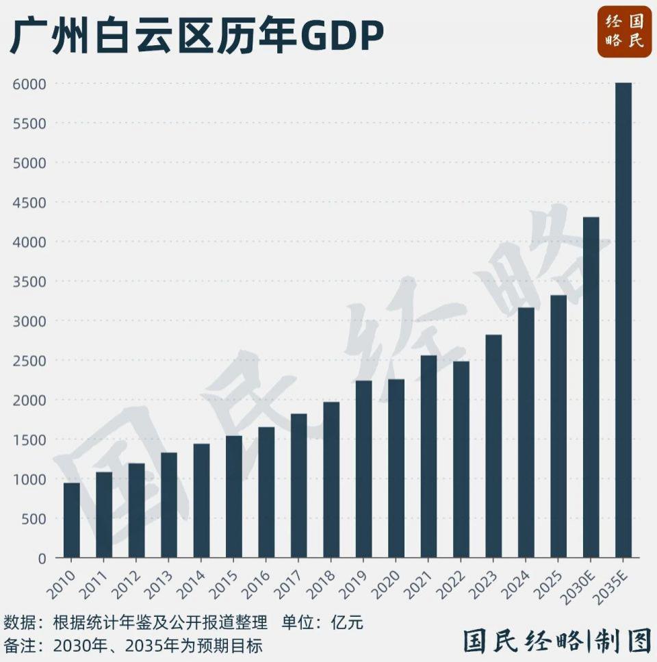 2026 年,广州年度经济增长目标设在 5% 左右,而白云区则以 5.5% 左右为追求,并将未来 10 年的年均增速设在 5.5% 左右,推动2030 年 GDP 总量超 4300 亿元、2035 年突破 6000 亿元。