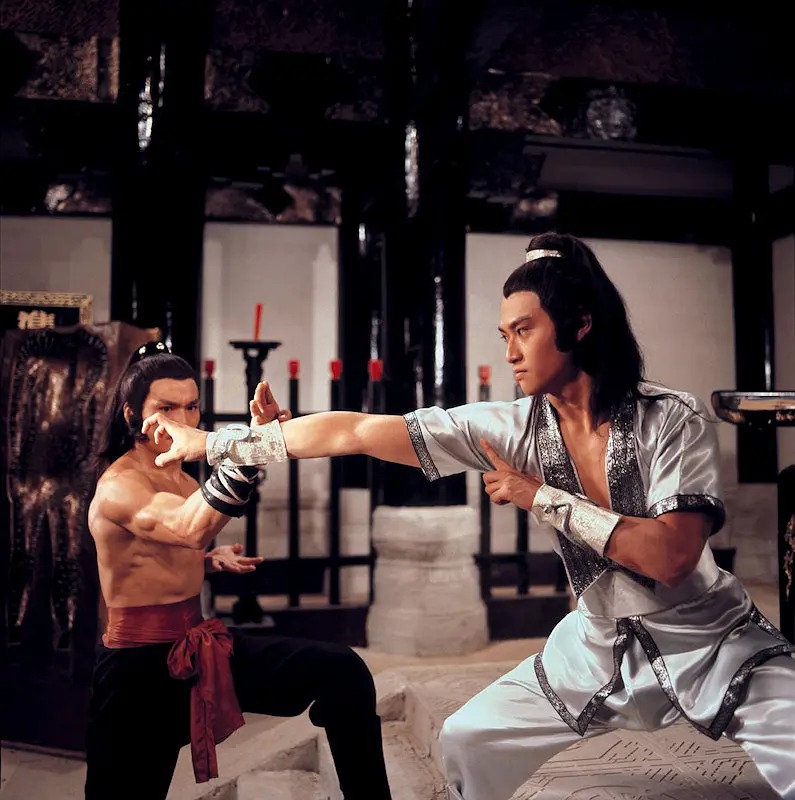 香港地区从此与旧武侠一拍即合。在此后的60、70年代,旧武侠步入了以邵氏兄弟为核心的鼎盛期。这一时期的灵魂人物胡金铨与张彻,如同硬币的两面,共同锻造了旧武侠的叙事范式。电影评论家石琪将胡金铨与张彻视为邵氏黄金时代的双生子,并论证二者是旧武侠时代对立统一的典范。在他眼中,尽管二者有着迥异的视觉语言及表现形式,却在精神内核上达成了深刻统一:侠客们都生活在一个善恶分明、因果必报的伦理世界中,而江湖则是黑白分明、道义至上的理想国。相似的电影内核,植根在60年代末动荡的社会情绪之上。