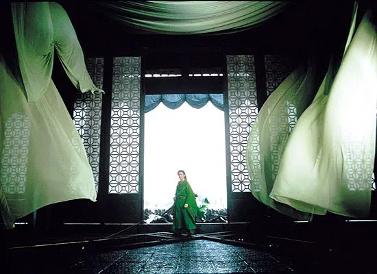 进入千禧年,武侠电影在港片的余晖中完成了从“地方性类型”向“全球化景观”的转身。此时,本土市场狭小的香港电影工业已面临难以抵挡的结构性下行,而CEPA的签署则成为武侠电影产业重心再度寻乡的推手。李安在《卧虎藏龙》中以克制压抑的叙事审视“礼”与“欲”的博弈,玉娇龙式的叛逆不仅打破了传统江湖旧梦,更藏匿着作者对个体自由被体制蚕食的深层忧虑。随后,张艺谋的《英雄》开启了国产武侠大片时代,极致的色彩美学将武侠叙事推向国家叙事的新高度,却也引发了关于个体是否应为宏大目标献祭的旷日持久的争论。