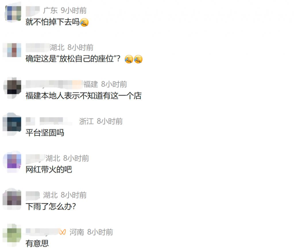 对此,不少网友对这种方式提出了安全上的担忧—— " 平台座位坚固吗?"" 会不会掉下去?"" 下雨天怎么办?"
