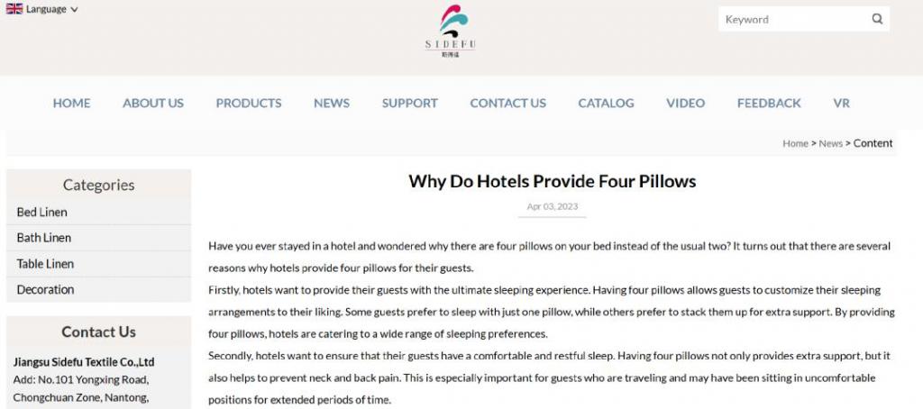 Sidefu China. ( 2023, April 3 ) . Why do hotels provide four pillows. Sidefu China.