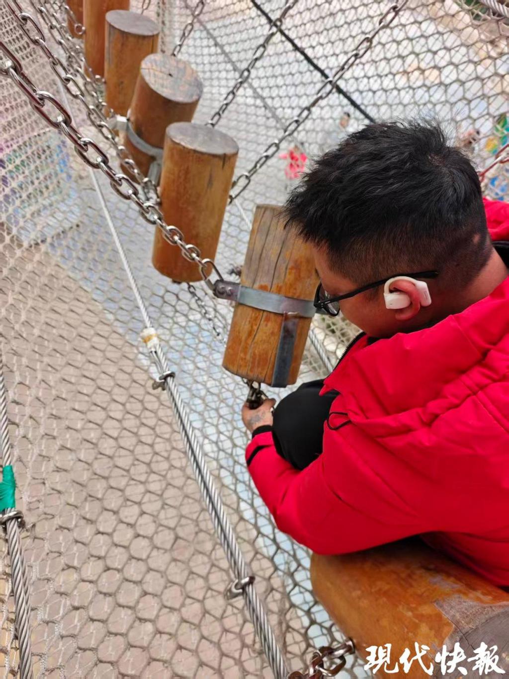 “估计孩子在过铁索桥的时候不小心弄掉了右侧的耳蜗,铁丝网晃来晃去,最终耳蜗吸附在了木墩下面的螺丝上。”杨宏伟分析说。21 日一早,到班后的杨宏伟立即联系朱女士,让她来景区认领人工耳蜗。