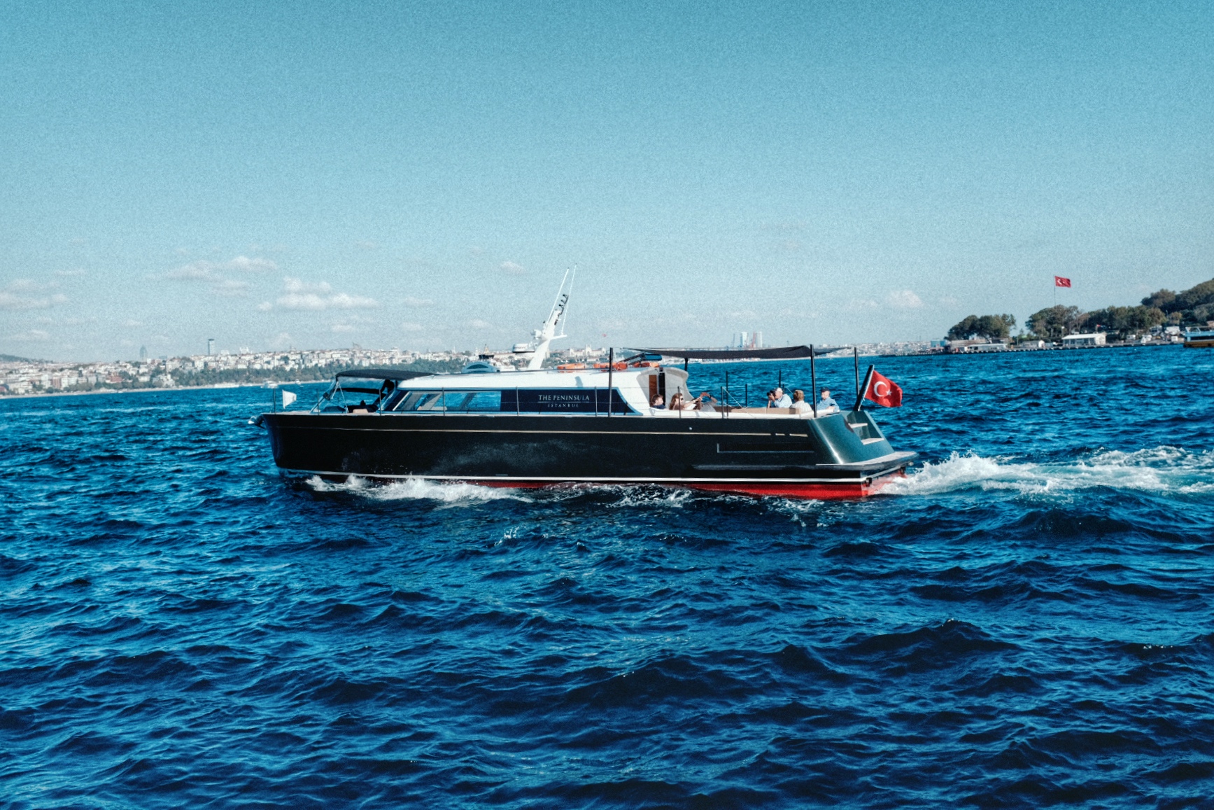 PEN 1游艇:这艘游艇所提供的接送机服务绝对是一种加分的体验,我感觉这比你单纯从酒店私人码头上船去博斯普鲁斯海峡绕一圈更值得。它由土耳其本土船舶设计师设计,船体以“半岛绿”勾勒,红木船身配柚木甲板与抛光不锈钢细节,经典航海语言与现代奢华美学结合;