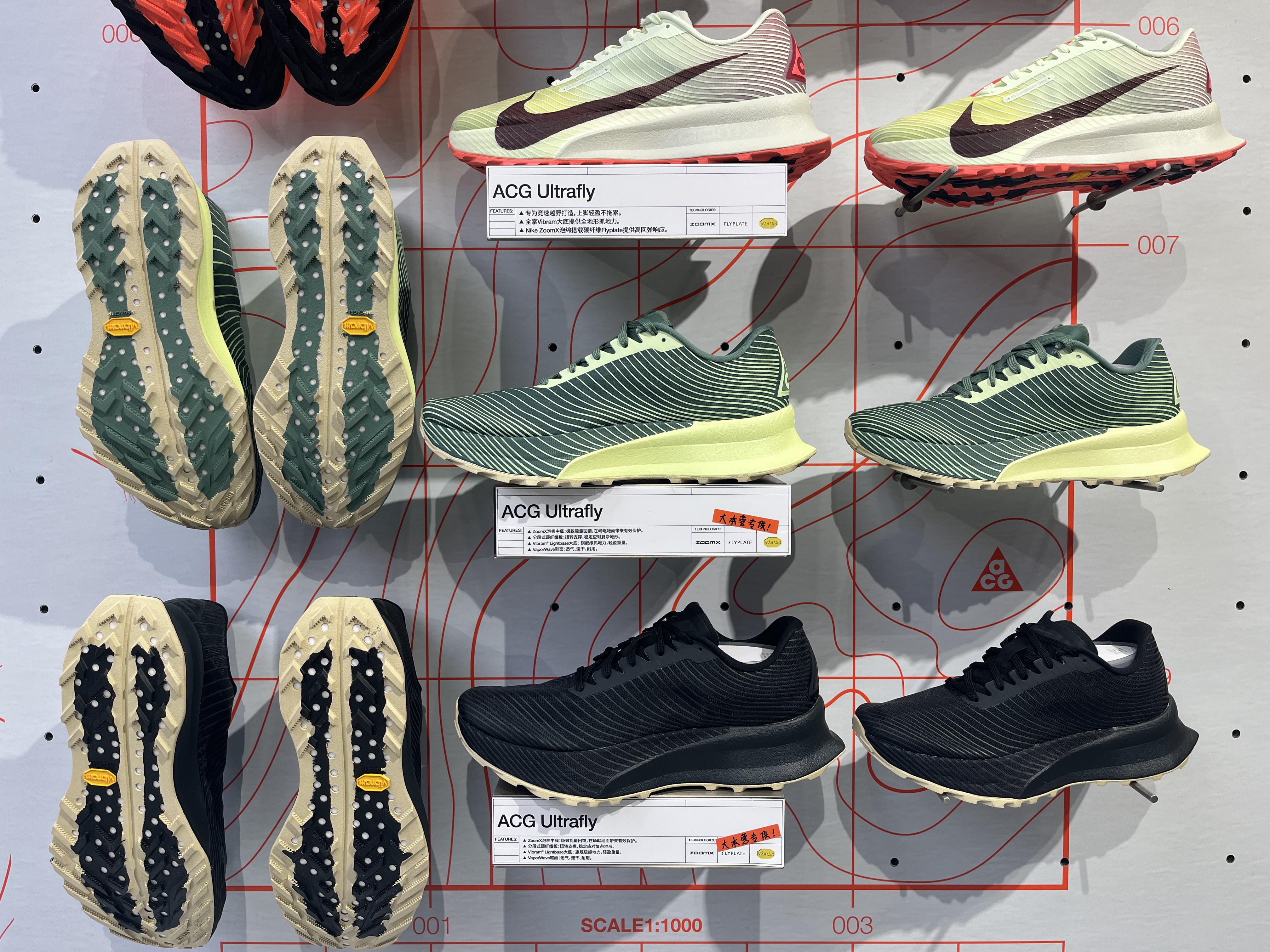 首先,该门店特别推出了大本营限定款。界面新闻记者在门店观察到,其主打鞋款ACG Ultrafly中部分产品标注“大本营专供”。