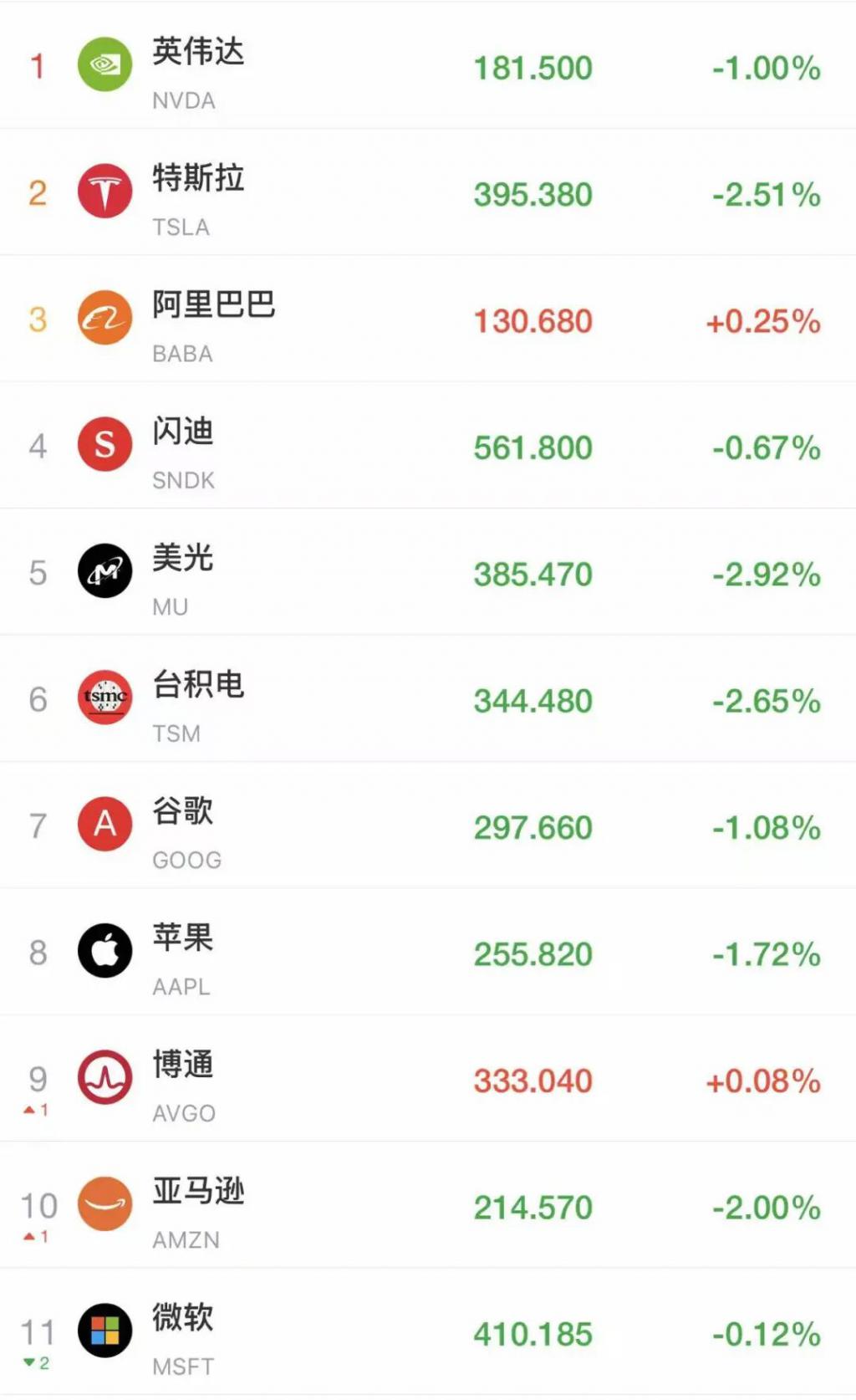 科技股集体走低,特斯拉、亚马逊跌超 2%,苹果、谷歌、英伟达跌超 1%,美光跌近 3%,台积电跌 2.65%。