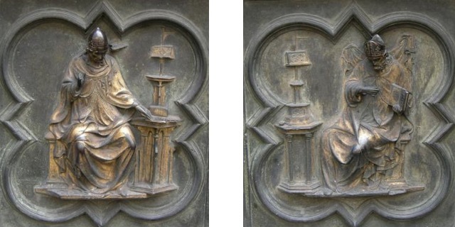 1348年左右,黑死病暴发,佛罗伦萨全城约三分之一的人口丧生,建筑和装饰活动也因此暂时告一段落。至14世纪下半期,瘟疫每隔一段时间就会造访一次。圣约翰洗礼堂的改建和装饰工作也因此一直断断续续,进展缓慢。到了1401年,佛罗伦萨再次暴发瘟疫,不过,这场瘟疫来得快、结束得更快。免遭劫难的佛罗伦萨人认为这是上帝保佑的结果。为了表达感激之情,他们决定为圣约翰洗礼堂修建一座崭新的青铜门,即洗礼堂的北门。