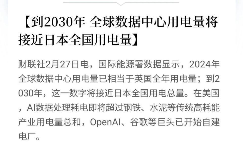 如果说互联网是数字经济时代的 " 水电煤 ",那么数据就是 AI 时代的 " 新石油 ",算力则是核心发动机,电力则是根本支撑。