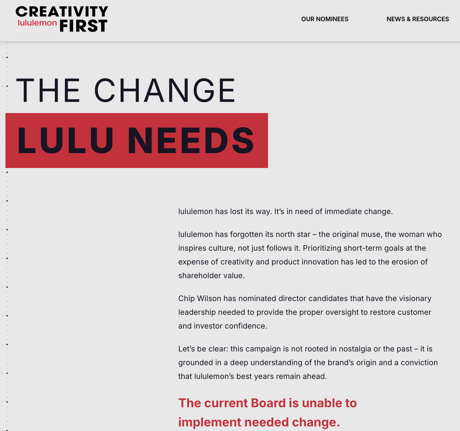 除了去年10月在《华尔街日报》刊登整版广告详细表达不满外(详见界面新闻《lululemon面临增长分岔口》),Chip Wilson在今年3月初还创建了一个网站,加大对这家运动服装公司的攻击力度。