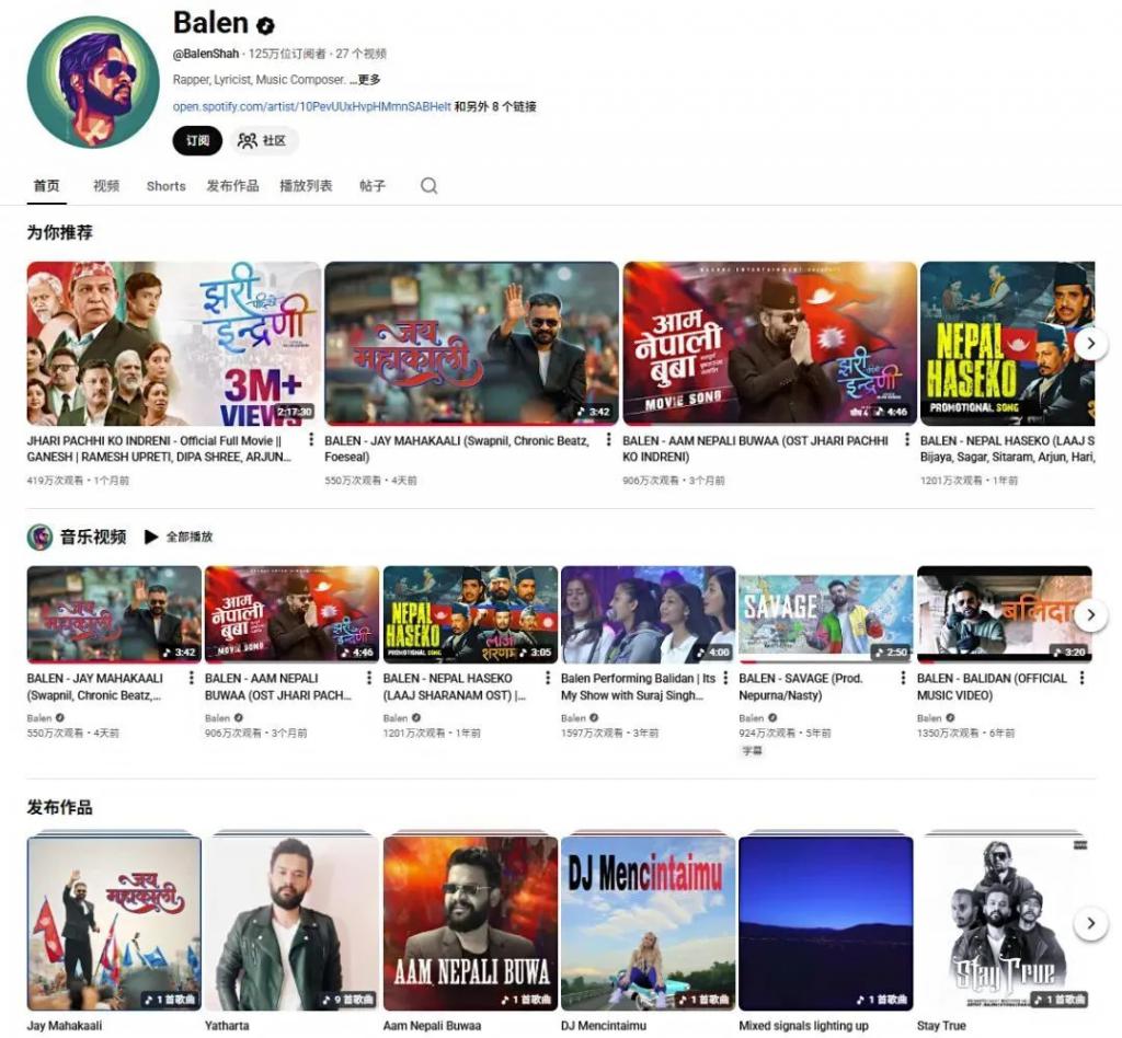在油管和其他一些平台还能听到巴伦的音乐作品(图:YouTube@BalenShah)