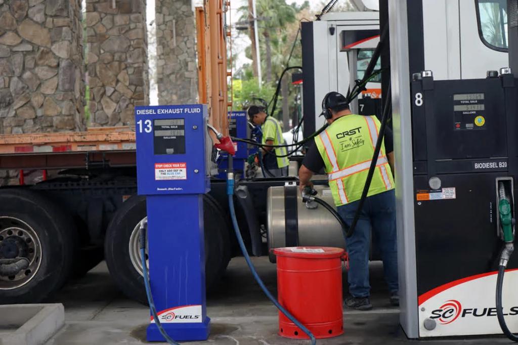 3 月 31 日,在美国加利福尼亚州蒙罗维亚市的一座加油站,司机为卡车加油。新华社发(曾慧摄)