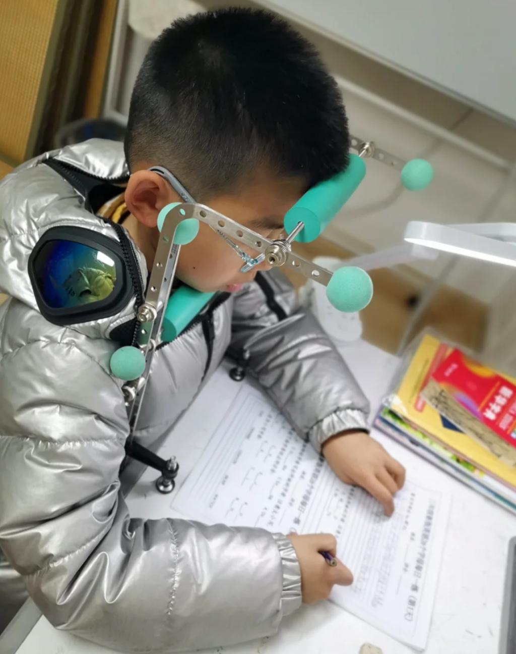 图 | 使用防歪头支架固定坐姿的孩子