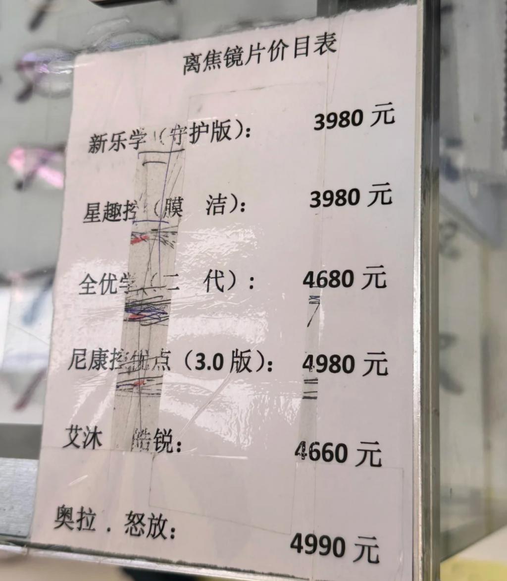 图 | 某验光店的防控镜片价位表