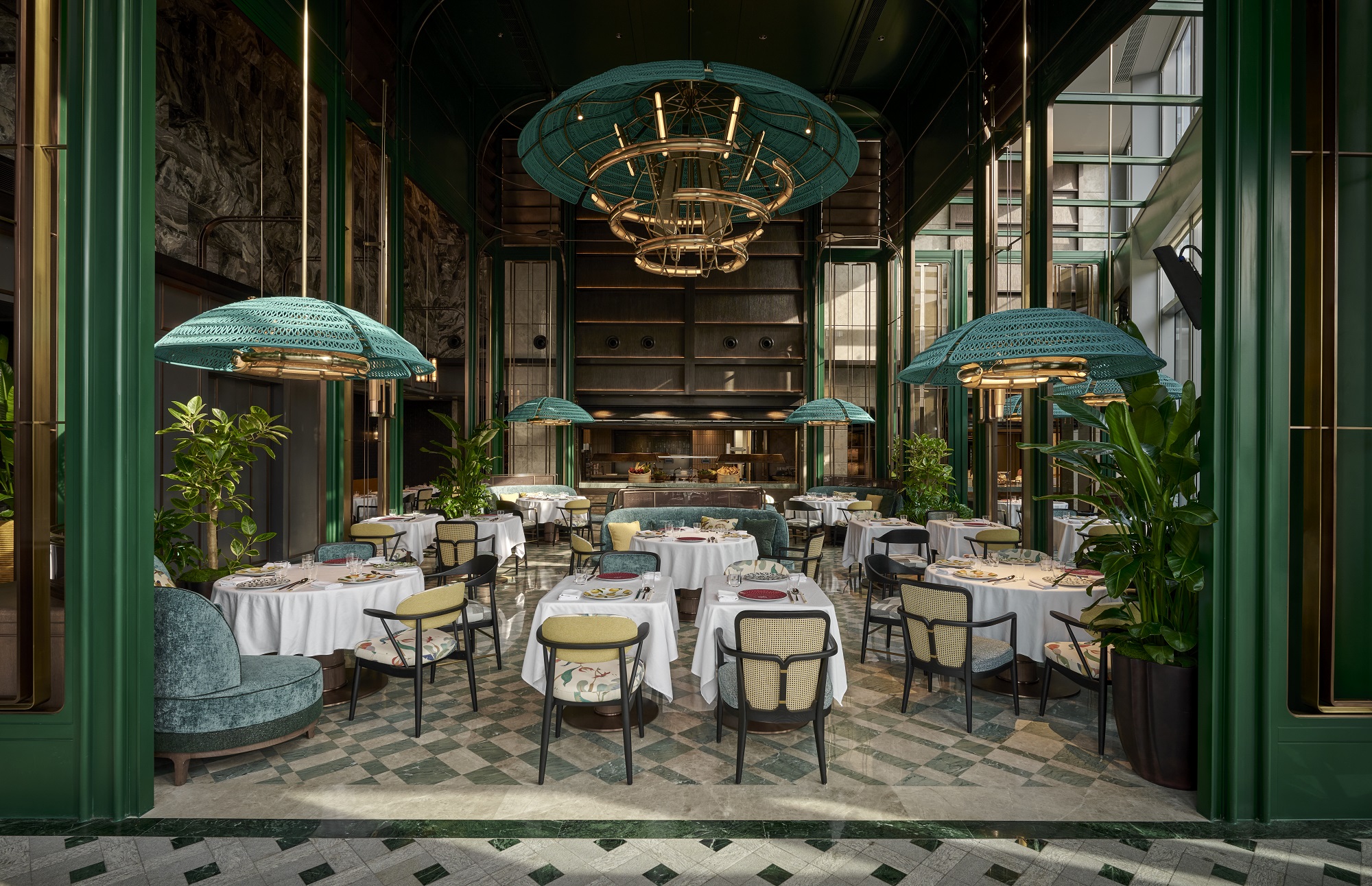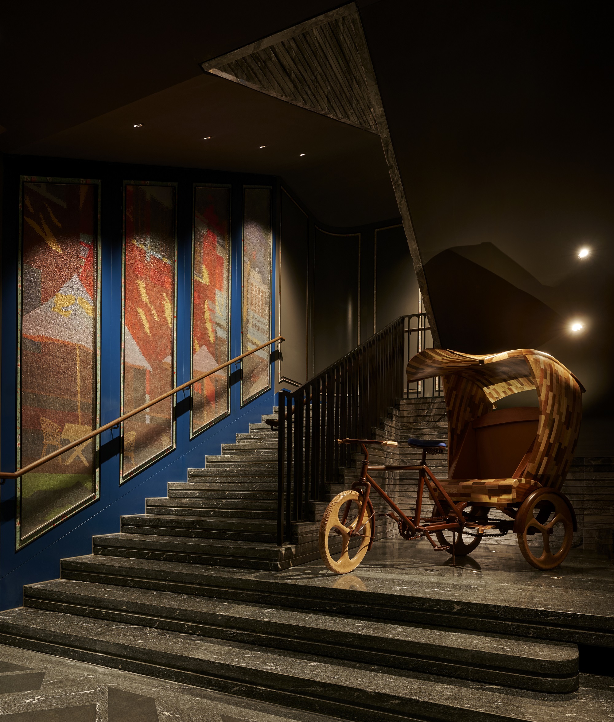 三楼庭院为石库门风格,并设置了光影斑驳的LED砖墙,这样一来,踏入酒店既能领略旧时上海弄堂里阳光透过树荫洒入院落内的景致。大堂一侧设立了一座复刻自上海海关大楼风貌的广场大钟,每天下午17:30,钟声准时响起,灯光与音乐同步切换,开启经典的Andaz Hour。