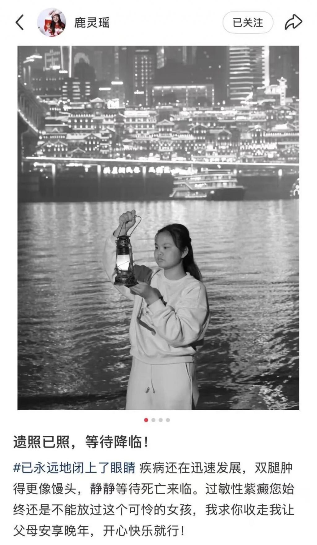 胡心瑶在平台上发自己的 " 遗照 "