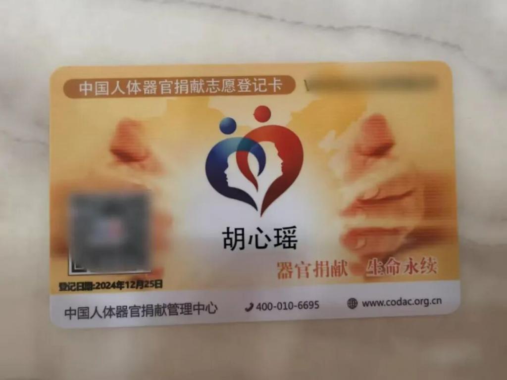 胡心瑶的人体器官捐献卡