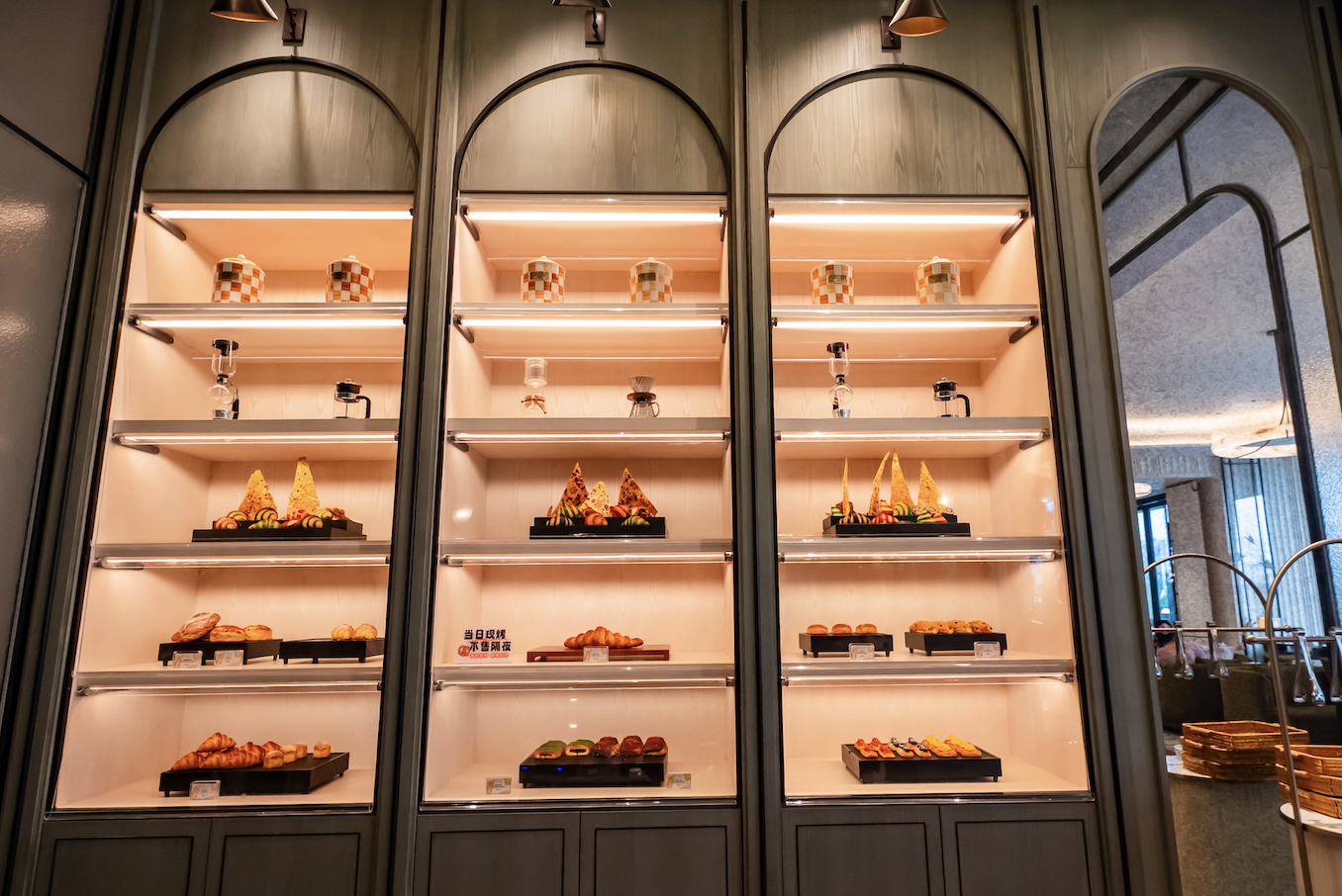 在常州,这种表达被具体拆解到不同空间之中:客房以常州乱针绣艺术品陈设回应江南文化,通过屏风巧妙融合中法元素;餐厅以色彩重构法式格调和园林意境,提供环球美食的同时在中餐厅菜品中融合常州本味与顺德风味,而可颂坊则将经典的法式烘焙工艺与江南时令灵感融合重塑;公区设计以高挑穹顶与拱形线条建立起法式韵律感,大堂以广玉兰与燕子等常州意象构建艺术装置,电梯空间镜面则引入中国与法国诗歌名作的并置呈现,形成跨文化的对话。