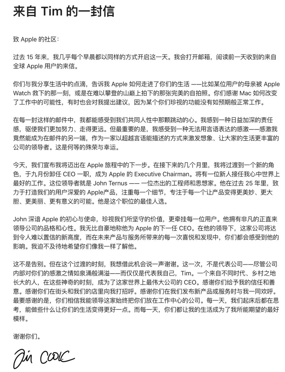 库克致苹果社区信
