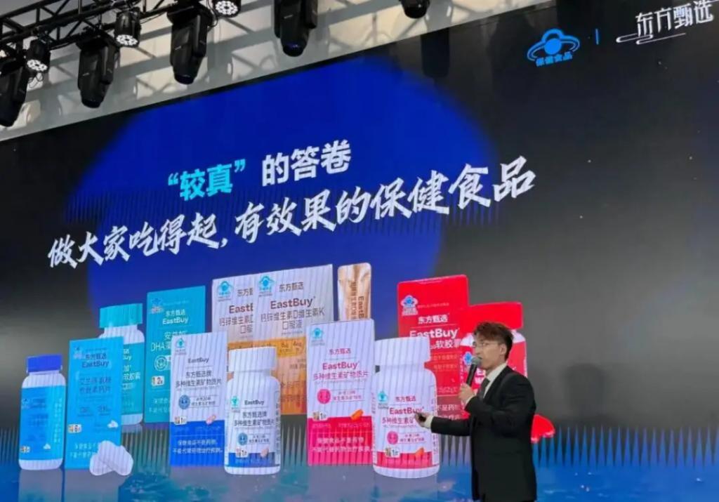 4 月中旬,东方甄选专门举办保健食品专场发布会,高调宣布旗下 6 款自营保健品成功获得国家认证的 " 蓝帽子 " 资质,产品涵盖辅酶 Q10 软胶囊、DHA 藻油、氨糖软骨素钙片、液体钙,以及两款多种维生素矿物质片。