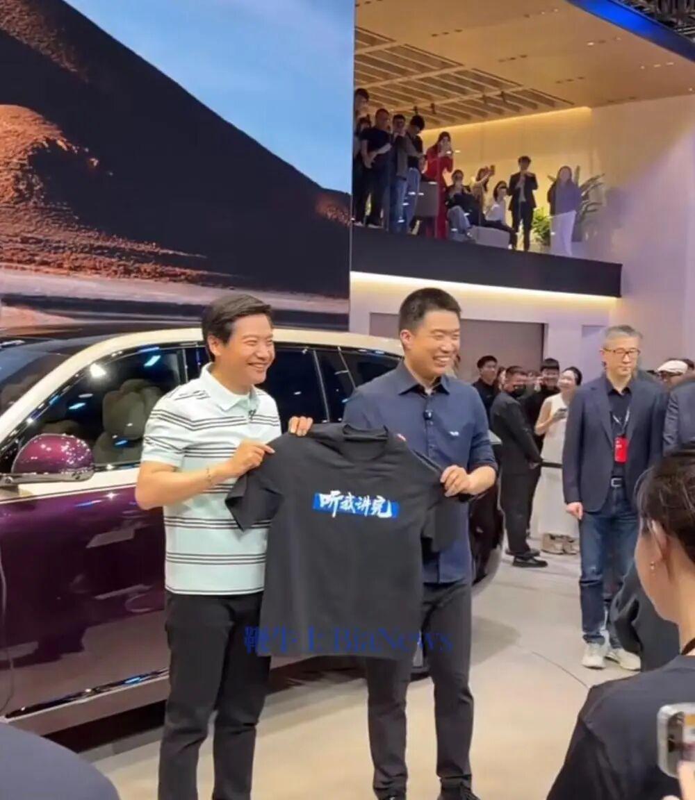 4 月 24 日,北京国际车展正式开幕。小米创办人、董事长兼 CEO 雷军来到理想汽车展台与理想汽车 CEO 李想同框互动。