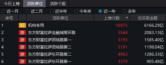 Wind资料显示,近一年来,龙虎榜的活跃席位中,除了机构专用席位,前几名均被代表游资的“东财拉萨天团”占据。