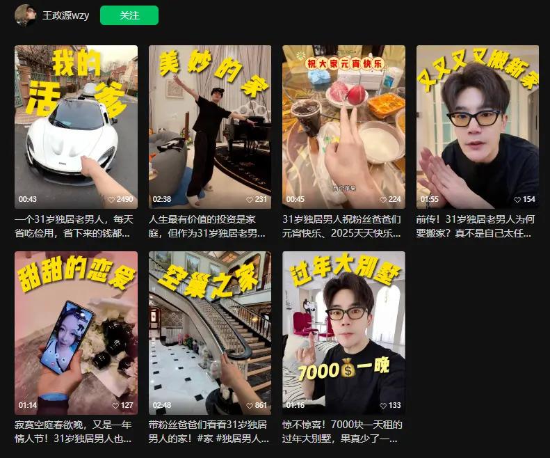 比如,作为一名网红,王政源营造的反差感具有很强的网络效应,他日常最爱点的是九块九的瑞幸,朋友请吃饭的话,他一天可以只吃那一顿," 该省省该花花 ",省钱的观念和开豪车的反差给人印象深刻。而且,他跟保姆阿姨、司机大哥 " 打成一片 " 的 " 没有架子 " 氛围,吸引了不少粉丝。