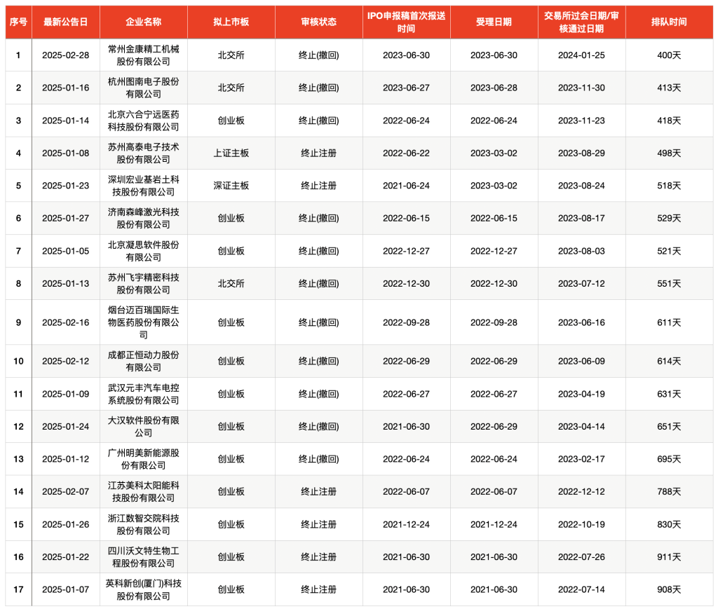 17家存量IPO撤回