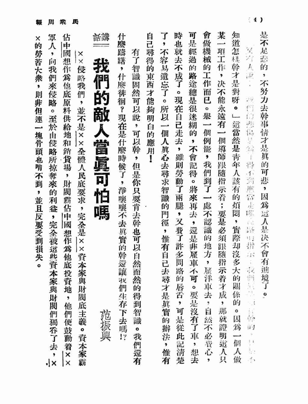 范振兴:《我们的敌人当真可怕吗》,《民众周报》1937年第3卷第4期