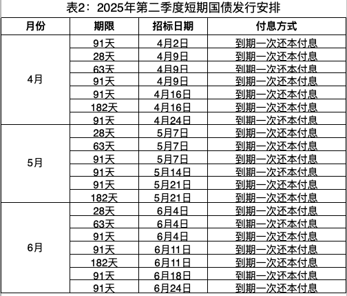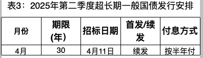 财政部3月31日公布2025年第二季度关键期限国债、短期国债、超长期一般国债、储蓄国债、中央金融机构注资特别国债发行有关安排。