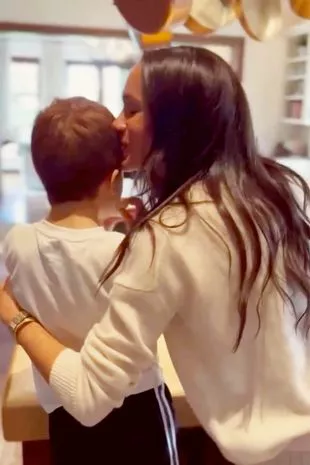把饼干从烤箱里拿出来后,可以看到他们把饼干装进盒子里,视频的最后,5岁的阿奇正在品尝其中一种饼干,他的妈妈亲吻了他的头。这段视频也在凯莉的Instagram账户上分享了,她的标题是“最美好的早晨!”