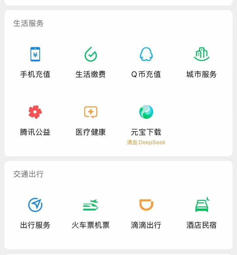 更值得关注的是,腾讯最大的流量入口,微信除了搜索接入 DeepSeek,实际由元宝提供服务,还在生活服务九宫格内给元宝提供下载推广,又是红点、"new" 提醒,还带着 " 满血 DeepSeek" 的标注。不禁让人惊呼,腾讯豁出去了,张小龙也不 " 克制 " 了。