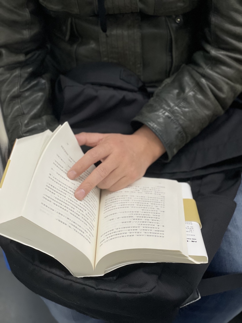 今年以来,愈发觉得地铁列车行进的速度赶不上人工智能的发展速度。也许有一天,在地铁上读书将成为一种古典行为,我所拍下的两千多个阅读瞬间将化作一首怀旧影像诗,但我始终相信深阅读特别是经典阅读的独特力量——它可以将智能设备发出的隐约而连绵不绝的电流声屏蔽干净。