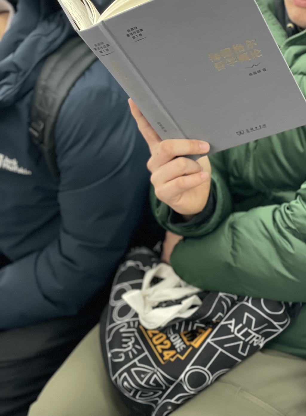 2025年1月26日。在地铁上读海德格尔,很可能是一直保有阅读习惯。陈嘉映《海德格尔哲学概论》。