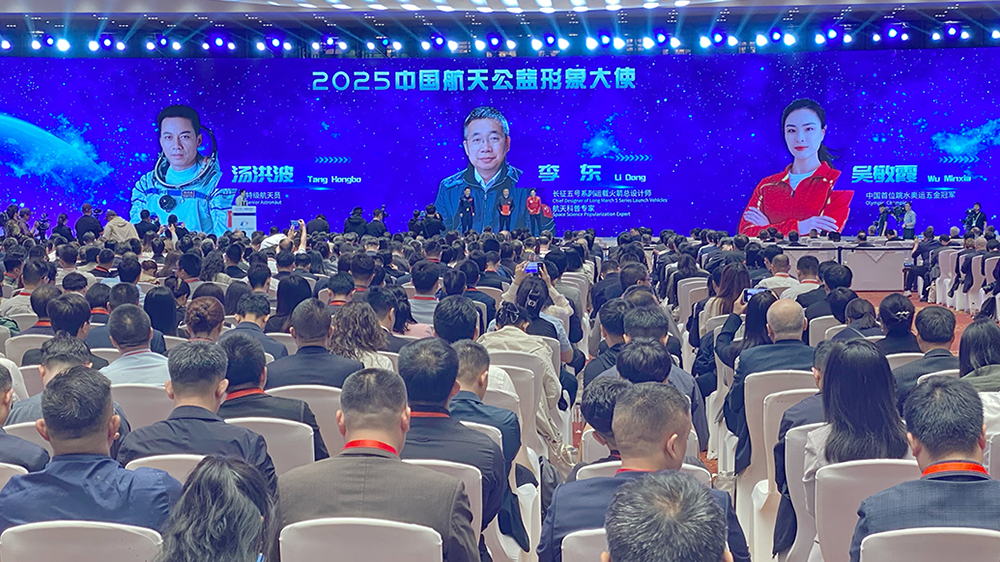 在今天的活动现场,还举行了中国航天公益形象大使授牌仪式,长征五号系列运载火箭总设计师、航天科普专家李东,特级航天员汤洪波,中国首位跳水奥运五金冠军吴敏霞成为今年的三位中国航天公益形象大使。