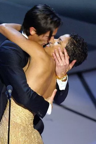 获得2025年奥斯卡提名的阿德里安·布罗迪在2003年获得奥斯卡奖《钢琴师》后亲吻了主持人哈莉·贝瑞。(图片来源:法新社)