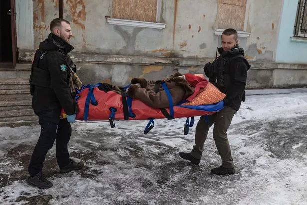 乌克兰救援人员拯救老年受害者(图片来源:Anadolu via Getty Images)