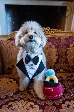 英国萨默塞特郡的奥查德利庄园首次举办了一场狗狗婚礼,此前越来越多的狗狗参加了更传统的婚礼。在这场独特的活动中,庄园的居民波比·文森特(Poppy Vincent)与狗狗界的新星——Cavapoochon米洛(Milo)交换了誓言。