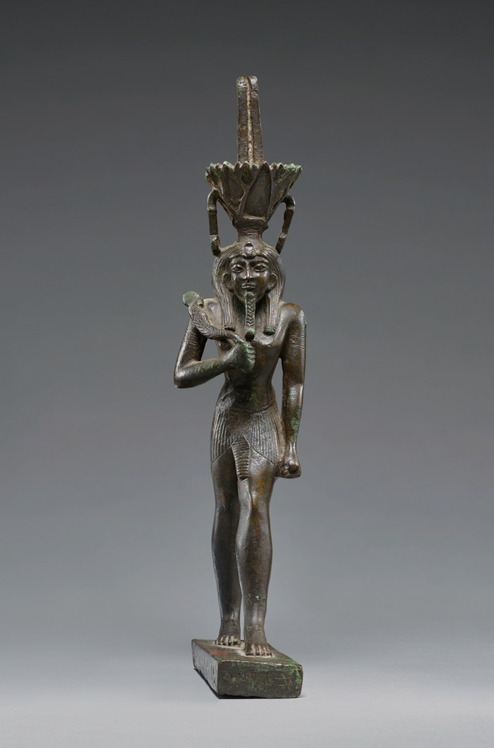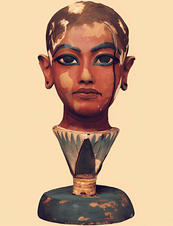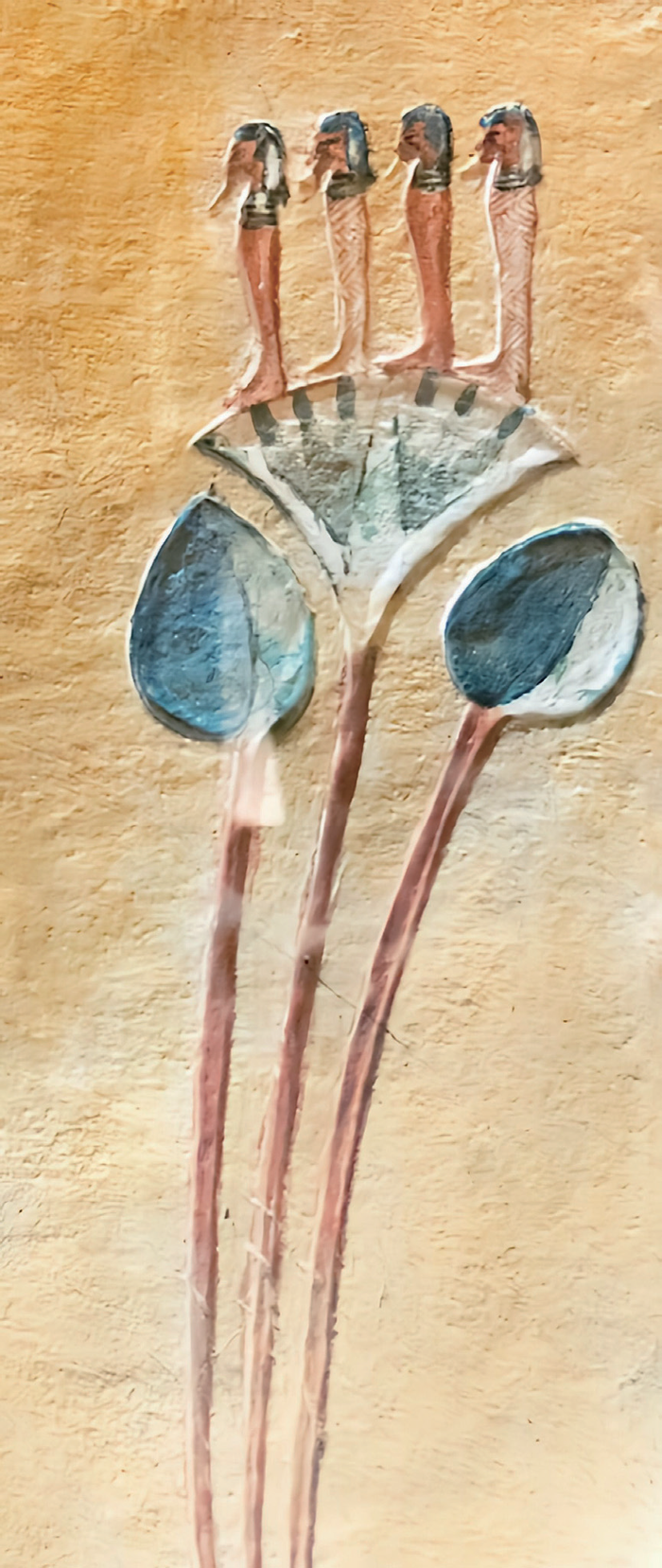 涅斐尔图姆一般被展示为一朵盛开的莲花形成的王冠,或戴着莲冠的青少年(图4)。如前所述,涅斐尔图姆展示的莲与青少年(儿童)的结合在亚洲相当流行,儿童可以是王子、毗湿奴、释迦牟尼或者哪吒。与哪吒信仰联系更紧密的是,古埃及人相信莲花可以治病,而置于金字塔内木乃伊旁的莲可以帮助死去的法老(木乃伊)复活。也就是说,莲有起死回生(复活)的功效,因此,莲也是埃及的“治愈之神”。
