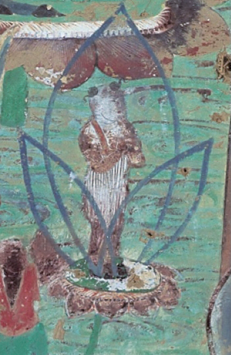 关于佛教中莲花化生的概念和形象在中国的传播,扬之水在讨论摩睺罗时有过讨论。她引用《无量寿经》和《法华经》,指出“化生”这个概念出自佛典。